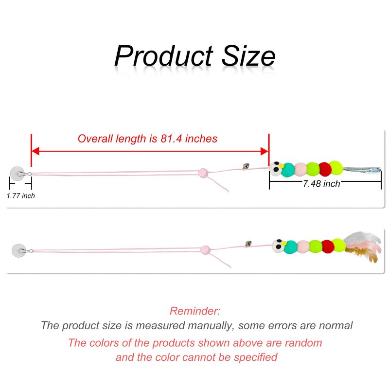 - 1. This interactive cat toy hanging has a unique shape. It consists of a plush ball of different colors to form a cute caterpillar, and the tail has colorful feathers/tassel, which is very easy to attract cats' interest in playing and stimulate their hunting instinct.