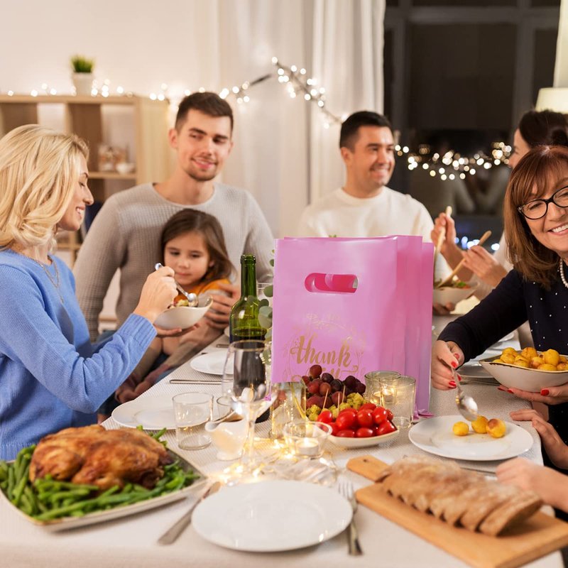 - Elegant Design: The plastic thank you gift bags with garland/thank you looks more beautiful and will make a good impression on your customers or friends; reusable and no harm to your body;