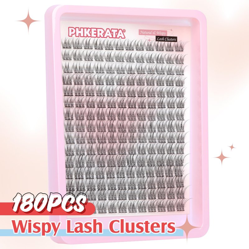 - 180Pcs Wispy Lash Clusters: 180Pcs wispy lash clusters pack, 4 different natural cluster lashes lengths(9-12MM). Just choose your favorite wispy lash extensions lengths in any combination and enjoy the natural individual lash salon at home.