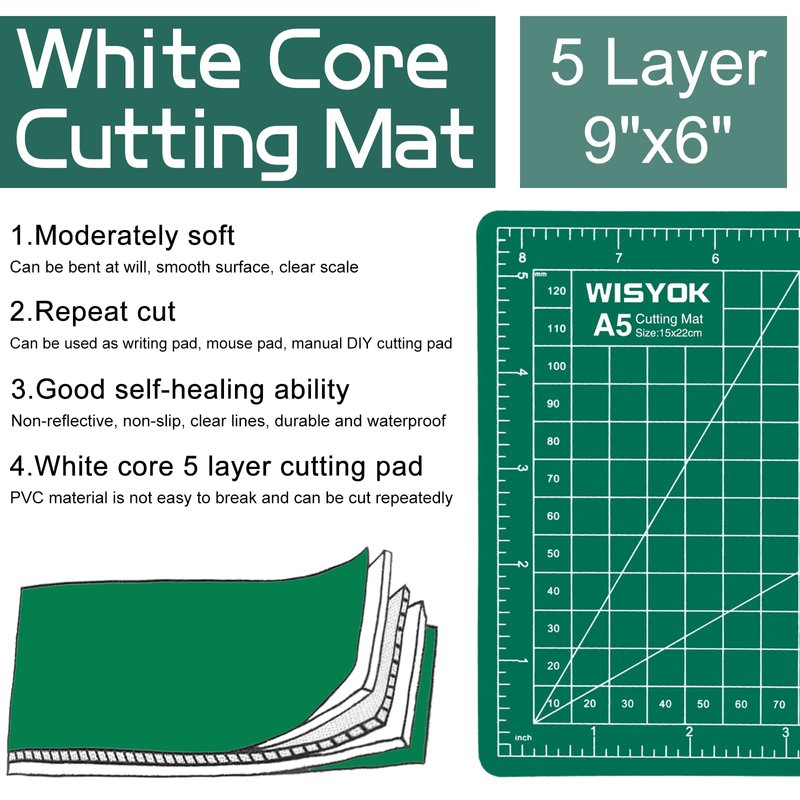 - Value Package: You will get 1pcs A5 5 layers self-healing cutting mat. Good self-recovery ability, non-reflective, non-slip, clear lines, durable, and non-fading. Ideal for school, family, office standing.