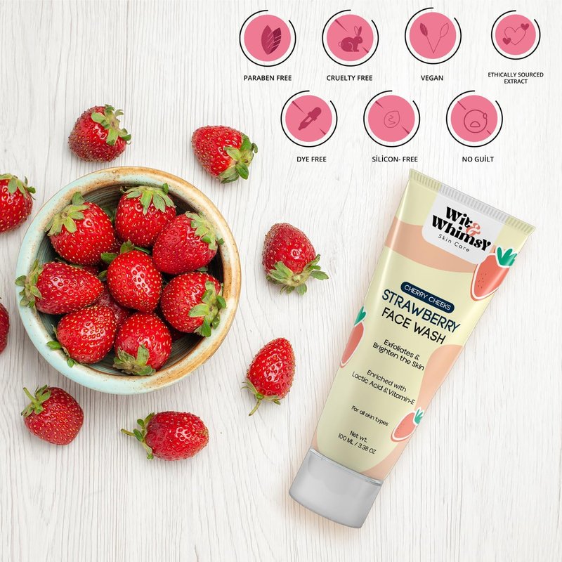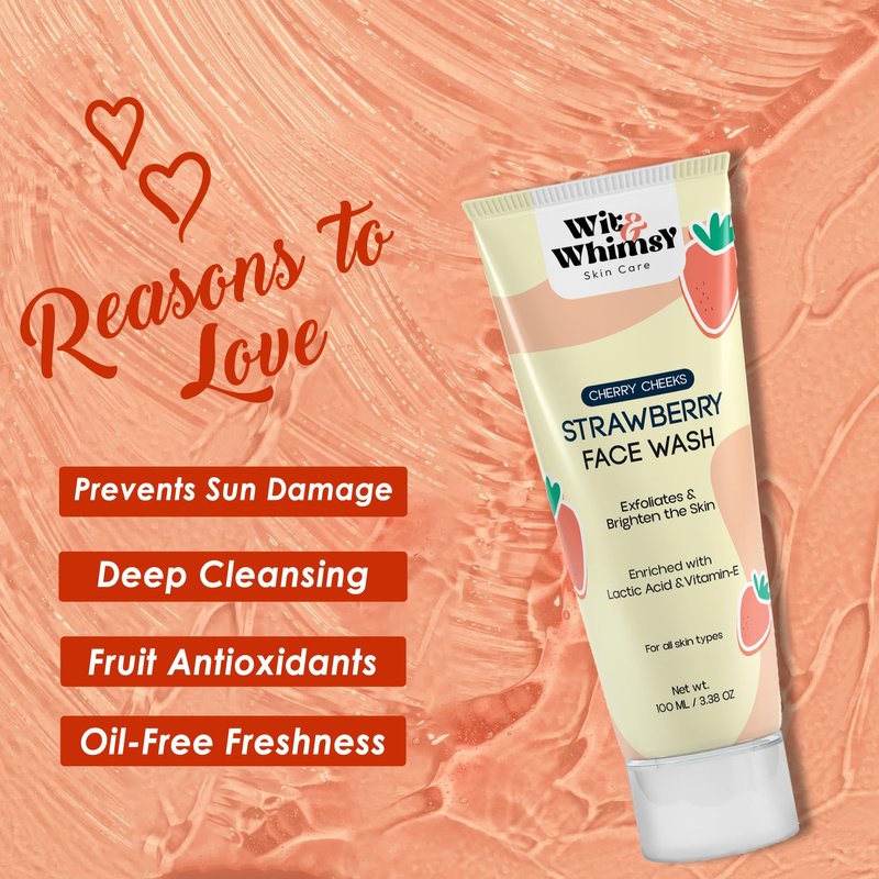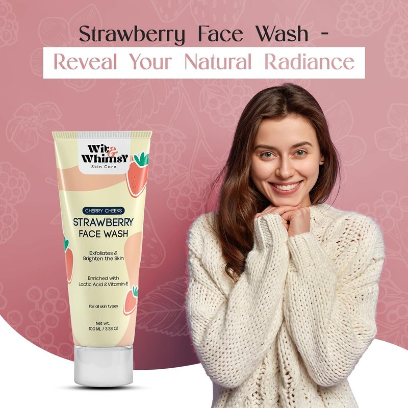 - ✅FRUITY ZEST EXFOLIATION: Indulge in the refreshing CITRUS EXFOLIATION with Wit & Whimsy Strawberry Face Wash. Infused with natural strawberry extracts, this invigorating face wash gently removes dead skin cells, unveiling a smoother complexion. The citrus elements not only add a delightful zest but also contribute to the brightening properties of the formula.