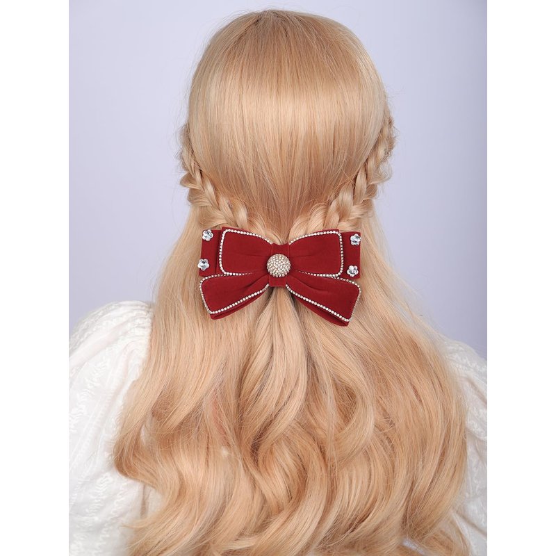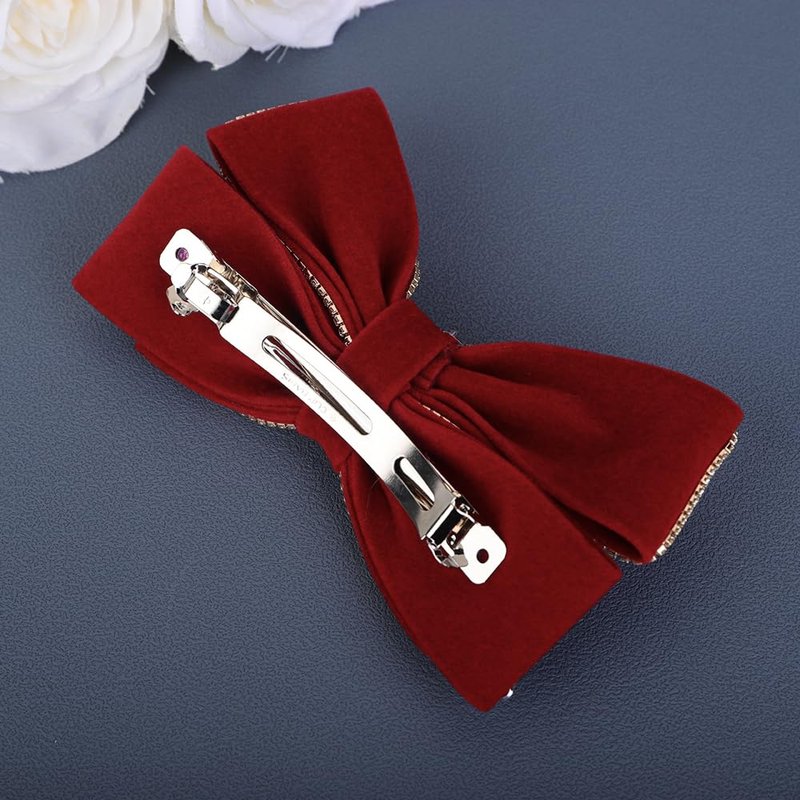 Wiwpar Rhinestone Red Velvet Bow Hair Clip Non-Slip Bowknot Hairpin Clips French Barrettes Hair Clips Ponytail Holder Christmas Prom Hair Accessories for Women Girls Kids Teens Birthday Gifts (Red)