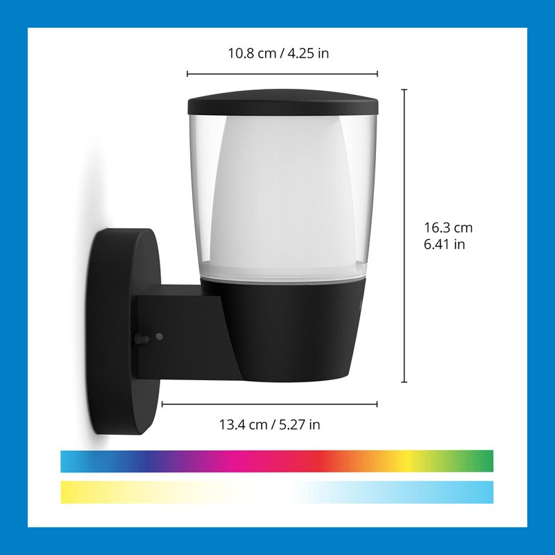 WiZ Connected Color Elpas - Pack of 1 - Smart WiFi - Outdoor LED Wall Light - 16 Million Colors - Compatible with Alexa Google Assistant, Bluetooth Compatible, No Hub Required