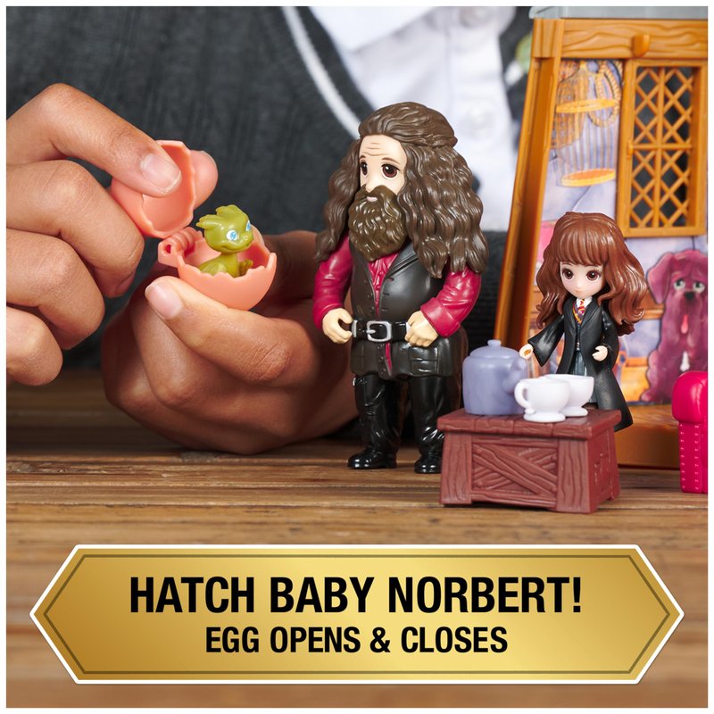 - MAGICAL MINIS HAGRID’S HUT PLAYSET: Recreate your favorite Harry Potter scenes inside the iconic hut with Hagrid, Hermione, and Norbert! This playset is perfect for Wizarding World adventures.