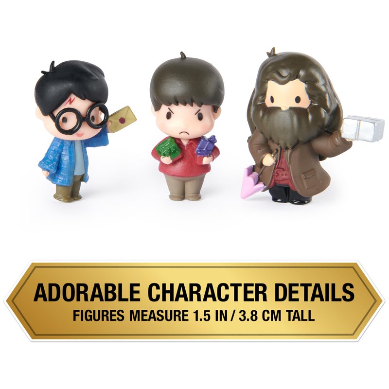 - 3 EXCLUSIVE HARRY POTTER FIGURES: Discover 1.5-inch figures of Harry Potter, Rubeus Hagrid and Dudley Dursley, a clear display case and 3 stands. Adorable details make these tiny Harry Potter toys a must-have