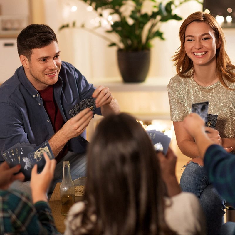 - [Easy to Shuffle] Updated material and production let our cards easy to shuffle,they don't fly out like other plastic cards when you shuffle,and the frosted feeling makes the entertainment smoother.
