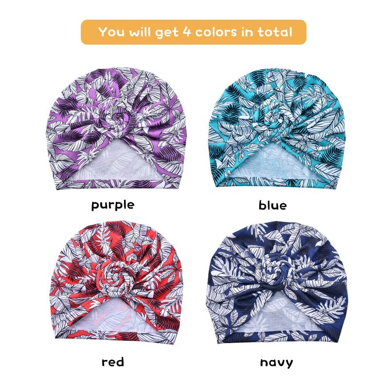 WKJHO 4 Pieces Women Turban Hat Head Wraps for Women Girls Twist Knot Pre-Tied Bonnet Turbans for Women Unique Leaf Pattern Beanie Cap Hat