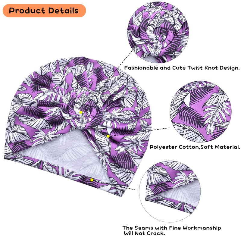 WKJHO 4 Pieces Women Turban Hat Head Wraps for Women Girls Twist Knot Pre-Tied Bonnet Turbans for Women Unique Leaf Pattern Beanie Cap Hats