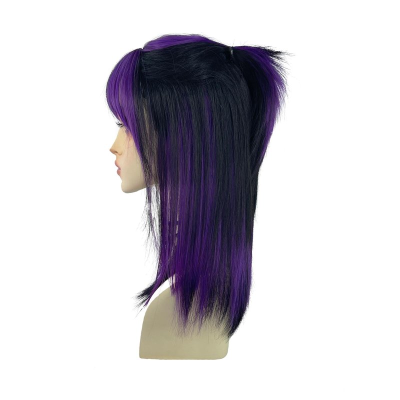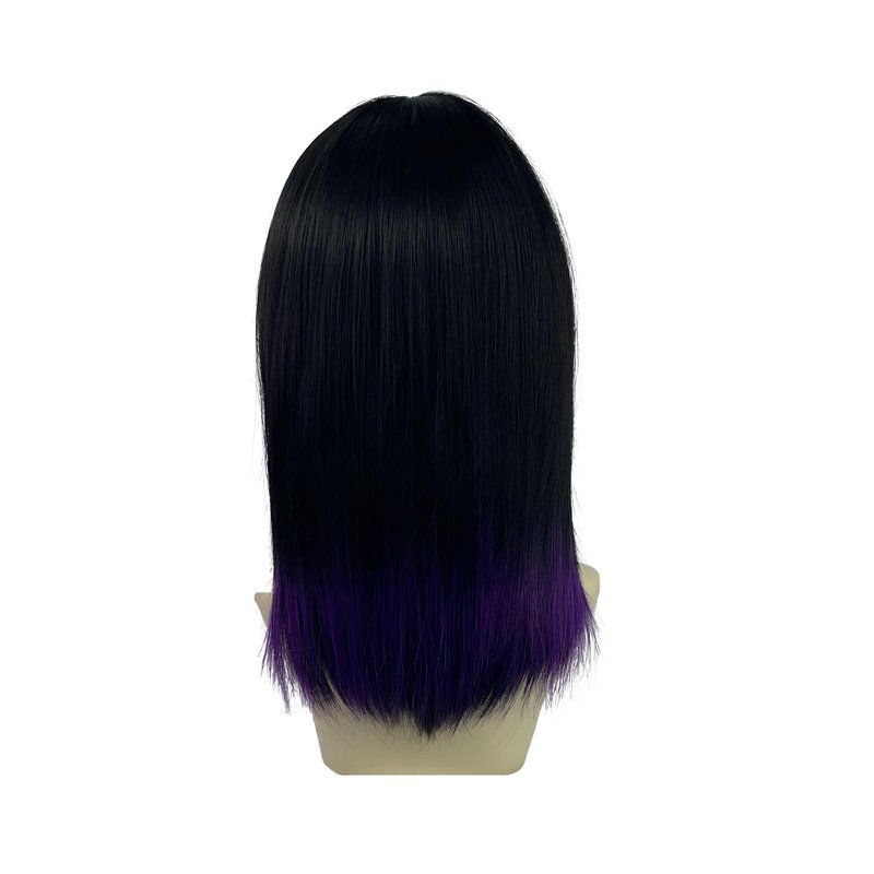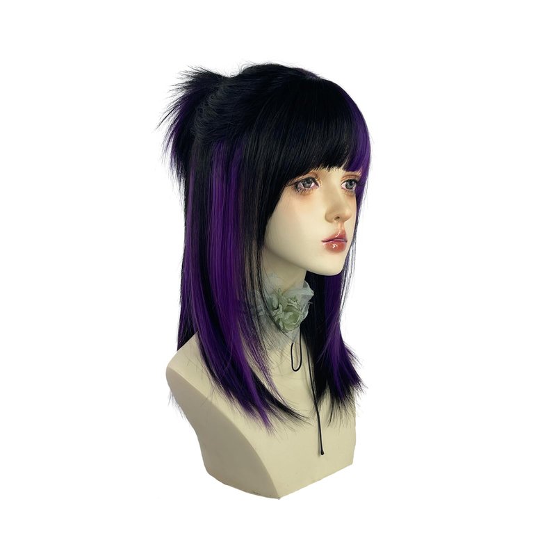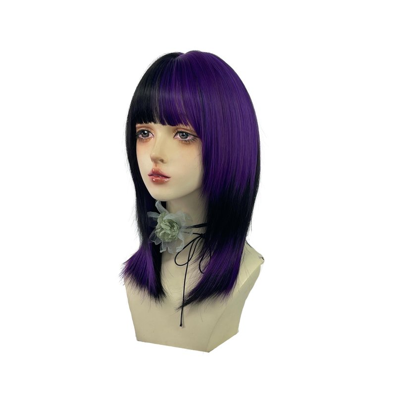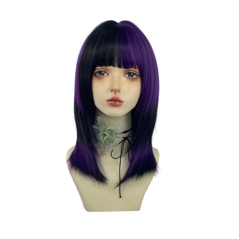 WKLOUYHE Short Straight Wig with Bangs for Women Shoulder Length Bob Women's Synthetic Wigs Heat Resistant Hair for Cosplay Halloween Daily Party Use (Black and Purple)