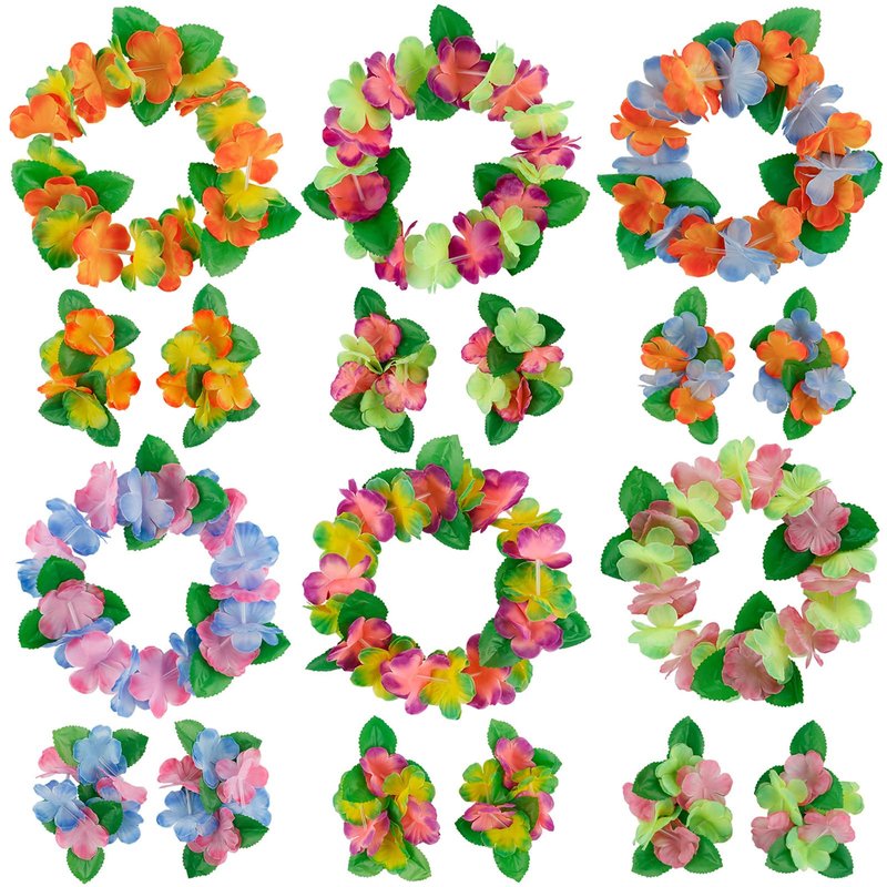 6 pcs hawaiian headband + 6 pairs of wristbands
