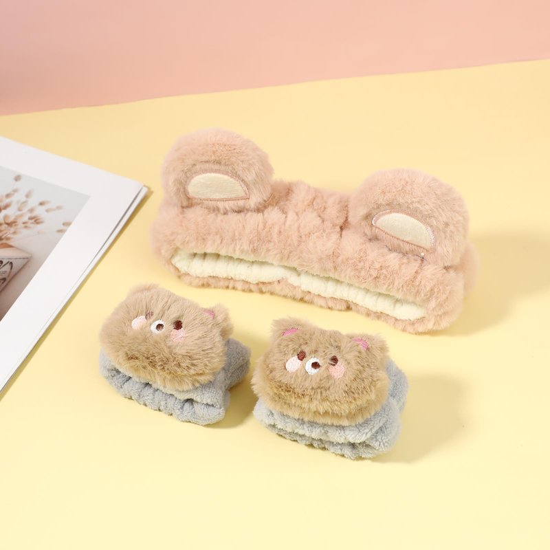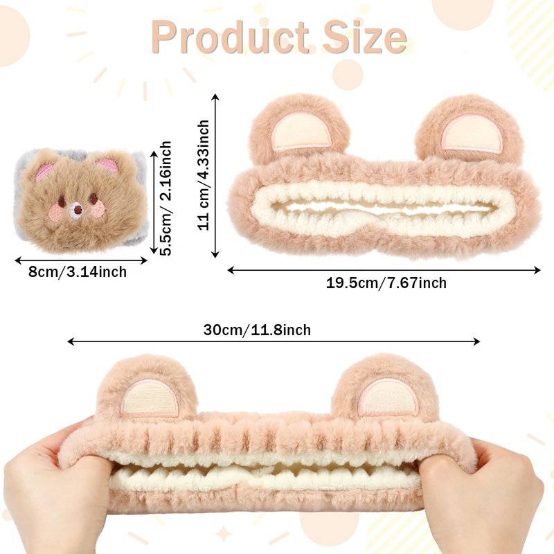- 【Cute Design】The top of the cartoon makeup headband is designed with cute bear ears, and the wristband has a cute bear design, skincare hair ties are sweet and cute and add fun to your daily life. The bath headband is great for keeping hair dry while washing your face or conditioning your hair, and the wristband stops liquids from flowing into your arms