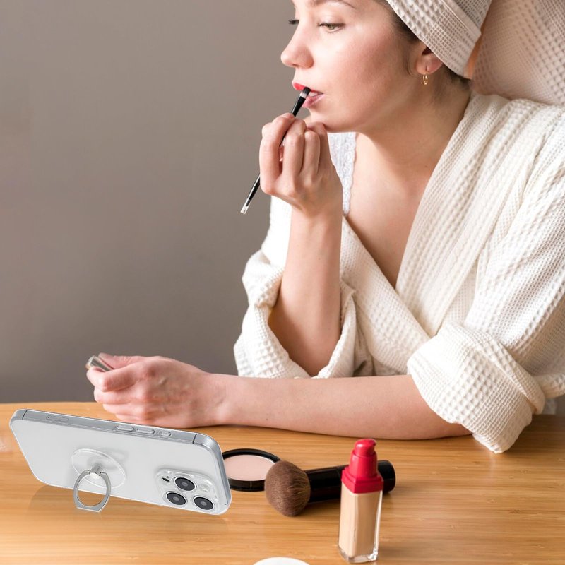 1. Transparent mobile phone ring holder, simple and stylish, transparent cell phone stand 360 degree rotation and 180 degree folding, free your hands.