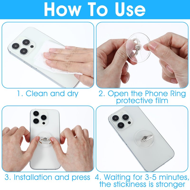 - 【Transparent Design】: The transparent cell phone ring design makes the phone ring holder grip perfect for any mobile phone with or without a case. The phone grips for back of phone keeps the mobile phone while maintaining the original functional design without affecting the appearance, and the rounded edges make your mobile phone more fashionable.