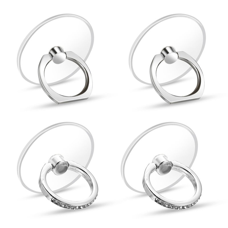 WLLHYF 4 PCS Cell Phone Ring Holder Transparent Ring Holder Clear Phone Ring Grips Holder Kickstand Cell Ring Stand Compatible with Most of Phones, Tablet and Case