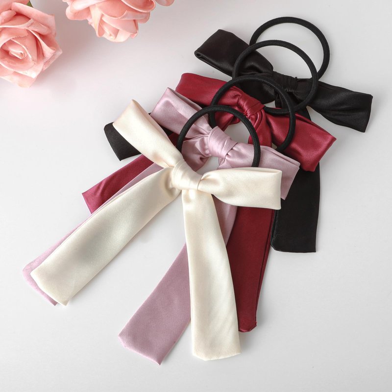 4PCS Bow Hair Tie Satin Hair Ribbon Bowknot Long Tail Ponytail Holder Elastics Hair Scrunchies French Hair Scarf Bands Rope Princess Hair Accessories for Women Girls