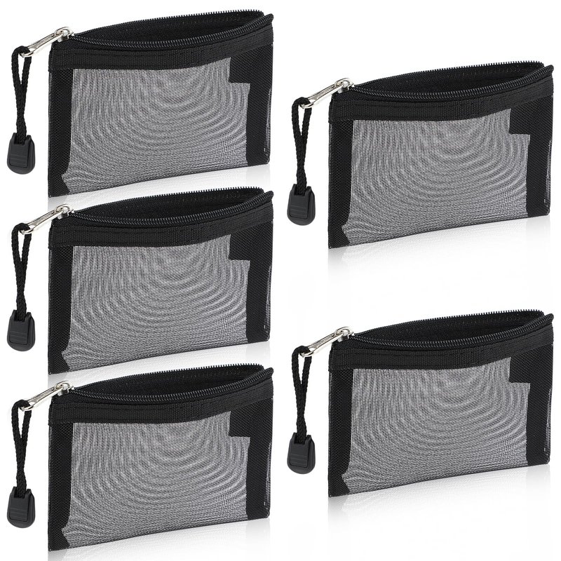 5 Pack Mini Zipper Mesh Bags 3 x 4.5 Inch Nylon Makeup Organizer Portable Travel Cosmetic Pouch Kit Beauty Accessories Holder Bag Storage Coin Purse for Small Items Key Lipstick Credit Card