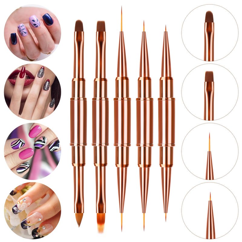 WLLHYF 5Pcs Double-Ended Acrylic Nail Art Brushes Set, Nail Art Liner Brushes 3D Nail Art Decorations Nail Art Tools Super Fine Striper Brush Set for Long Lines Thin Details Fine Drawing