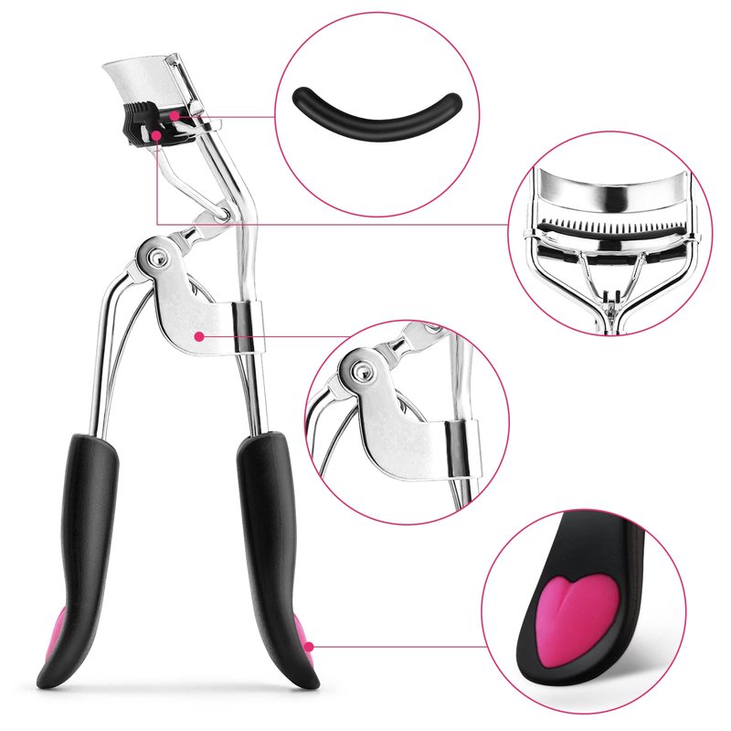 - 【High Quality Material】The eyelash curler is made of high quality carbon steel and a round silicone pad, durable and long-lasting. Gently curl your lashes to get the most curl, curl and longest lashes without pinching your skin