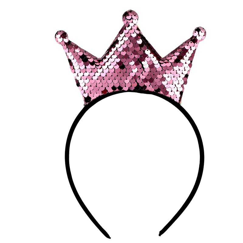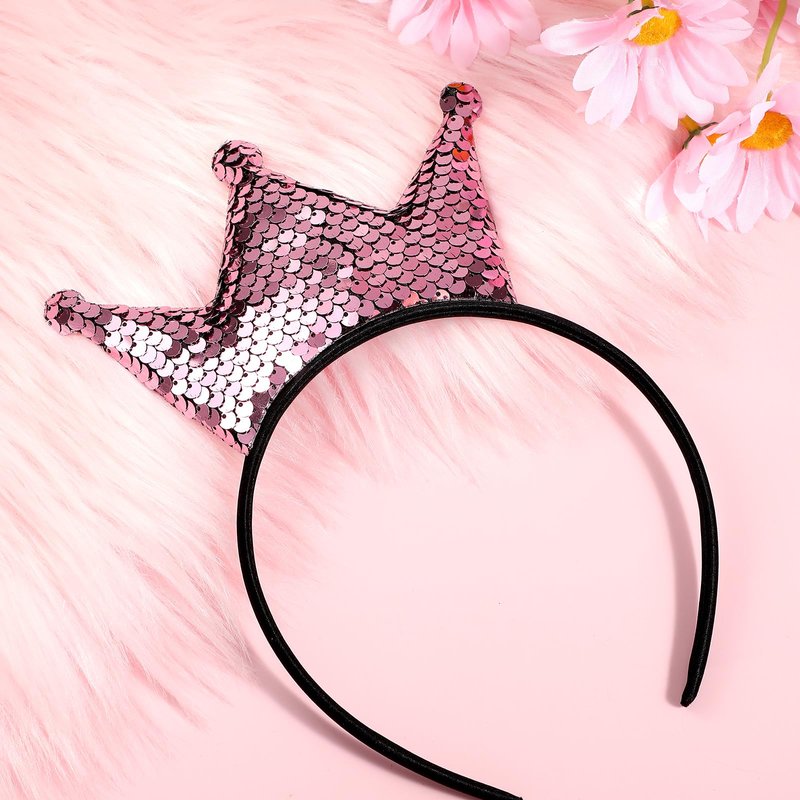 WLLHYF Sequins Crown Headband Christmas Glitter Crowns Hair Band Gold Hair Hoop (pink)