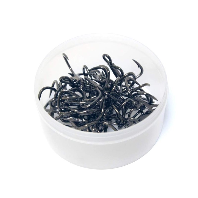 Cutting Blade Short Shank Forged Black Nickle 60 fishing hooks per pack Features: Hook Point - Special cutting blade grinding, make excellent penetration Welding - Smooth welding surface and identical length to make sure each hook's weight is equal Coating - Anti-rust coating, good for saltwater fishing Composition – Same angle of three single hooks, won’t affect swimming action of lure High Carbon Steel – Ultra clean, cold forged Flatting – Flatten hook body can increase flexibility and strength Replacement – Good for your lure hook replacement