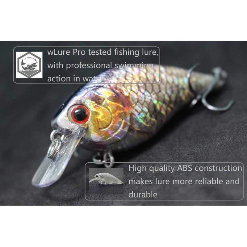 wLure Minnow Crankbait for Bass Fishing Bass Lure Jerkbait Fishing Lure (HC15KB, with Tackle Box)