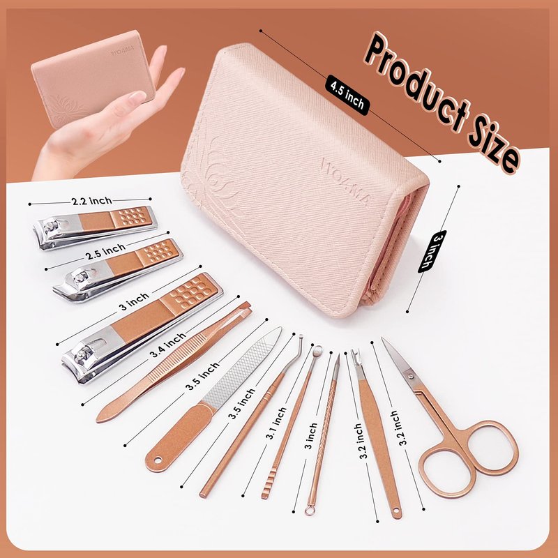 - 🥰【10 IN 1 SMALL MANICURE SET】WOAMA's travel nail clipper kit comes with ten pieces of nail and facial care tools. This manicure kit contains all of the necessary tools.