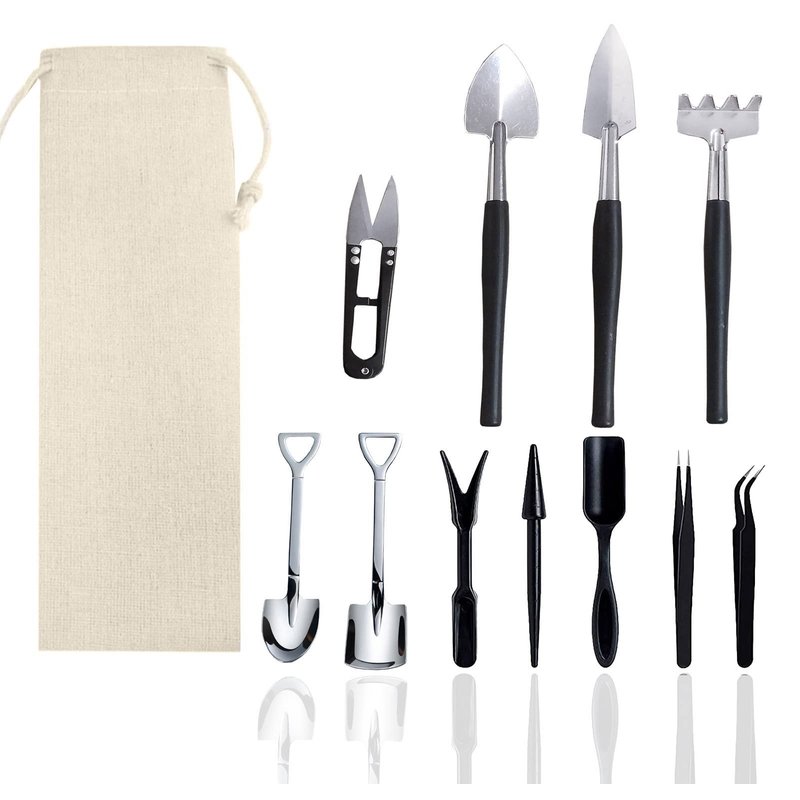 - 12 Piece Succulent Gardening Tool Kit For Planting Succulents, Bonsai Trees, Cactus, Transplanting and other necessary tools.