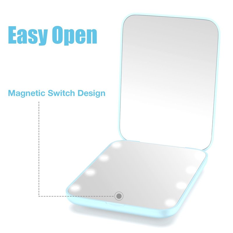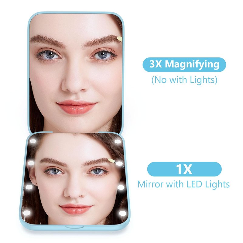 wobsion Mini Pocket Mirror, Led Compact Mirror,1x/3x Magnifying Mirror with Light,2-Sided Handheld Fold Mirror,Small Travel Makeup Mirror,Lighted Compact Mirror for Purse,Gift(Blue)