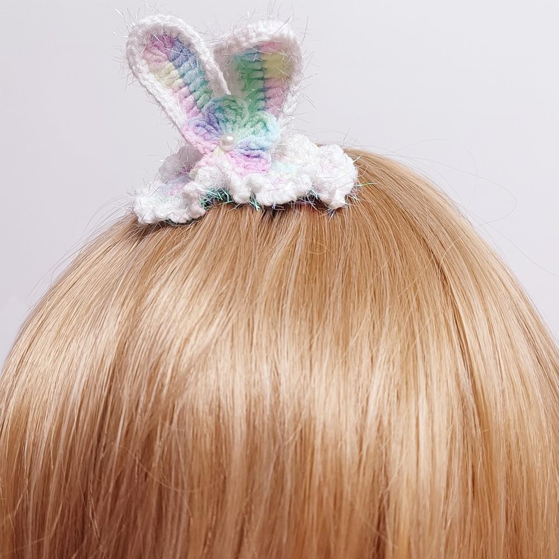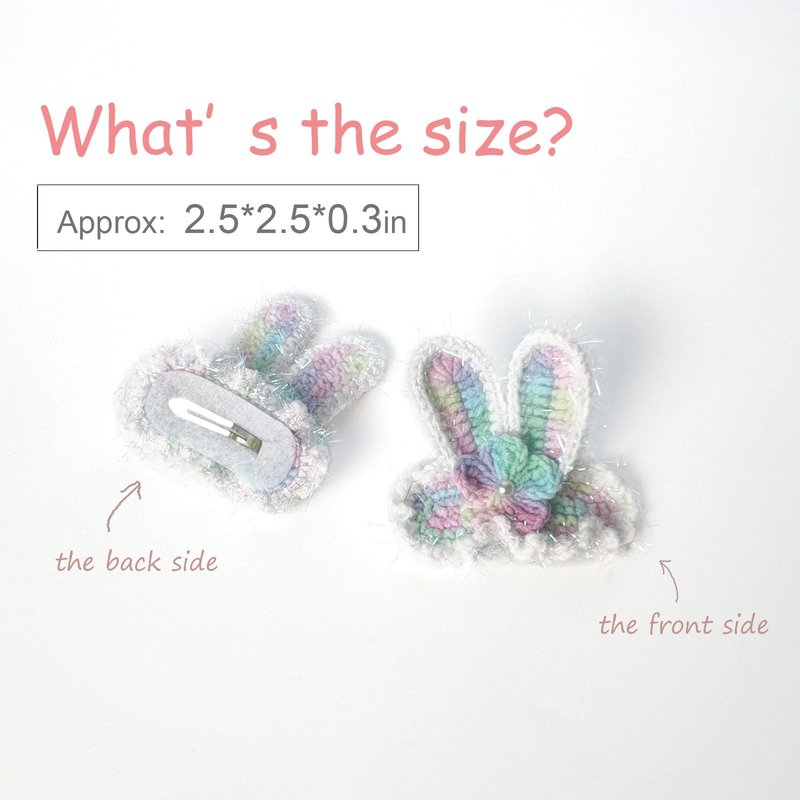 WOCATS 2pcs Metal Snap Hair Clips -Handmade Woven Knitting Adorable Bunny Crochet Hairpins as cool gifts for Wedding Party Makeup Birthday Decoration (Blue Rainbow)