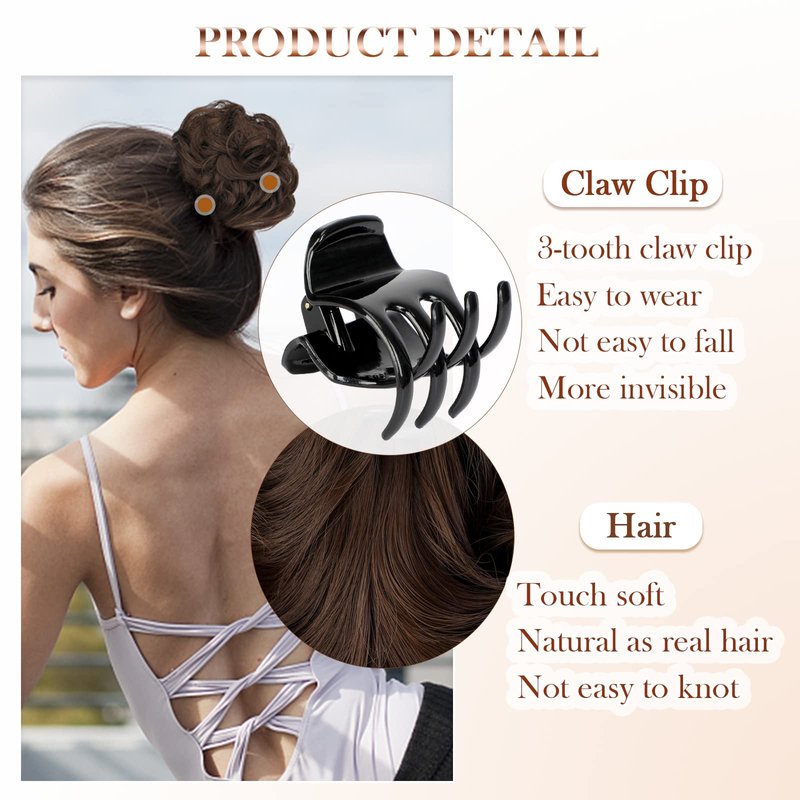 - Easy to use: The hair scrunchie is designed with claw clips, making it easier to put on and take off; A safe, tangle-Free experience for thick and thinning hair.Save time and money on expensive salon appointments with our messy bun hair piece solution.