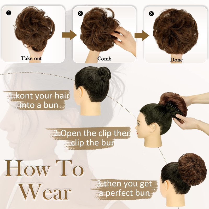 - Notice :Due to the color settings of different monitors, the colors you see may be slightly different.Please check your hair color that day and choose a color similar to our messy bun hair piece. If you have any questions, please contact us