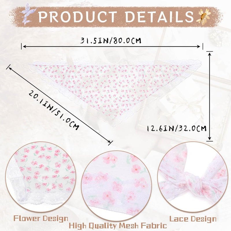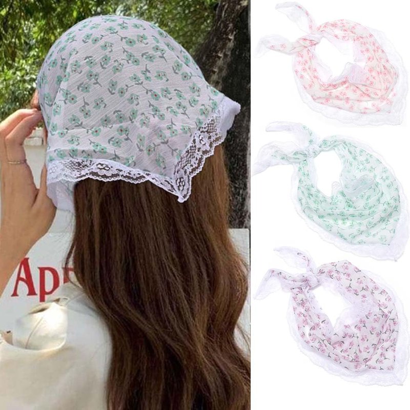 Woeoe 3Pcs Floral Hair Bandanas Triangle Print Flower Head Kerchief Headband Chiffon Lace Tie-Back Head Scarf for Women's Hair