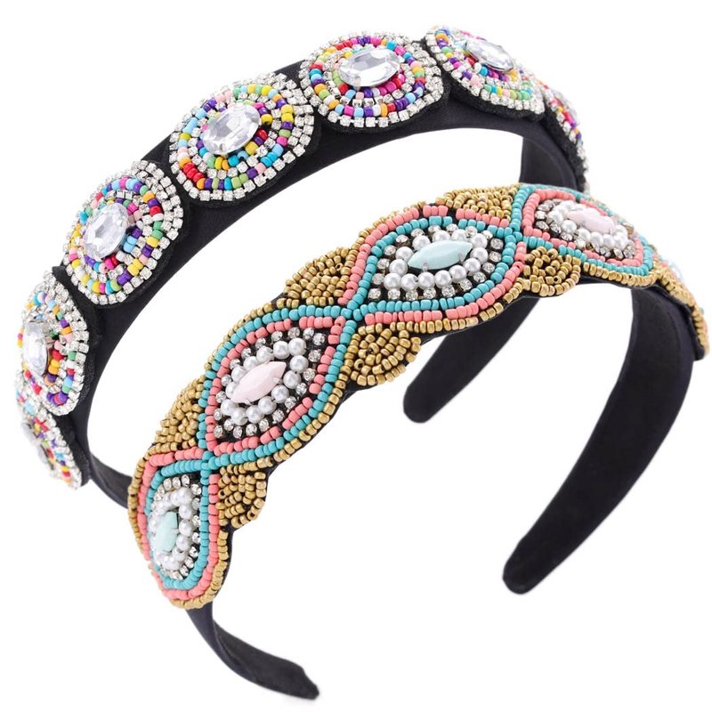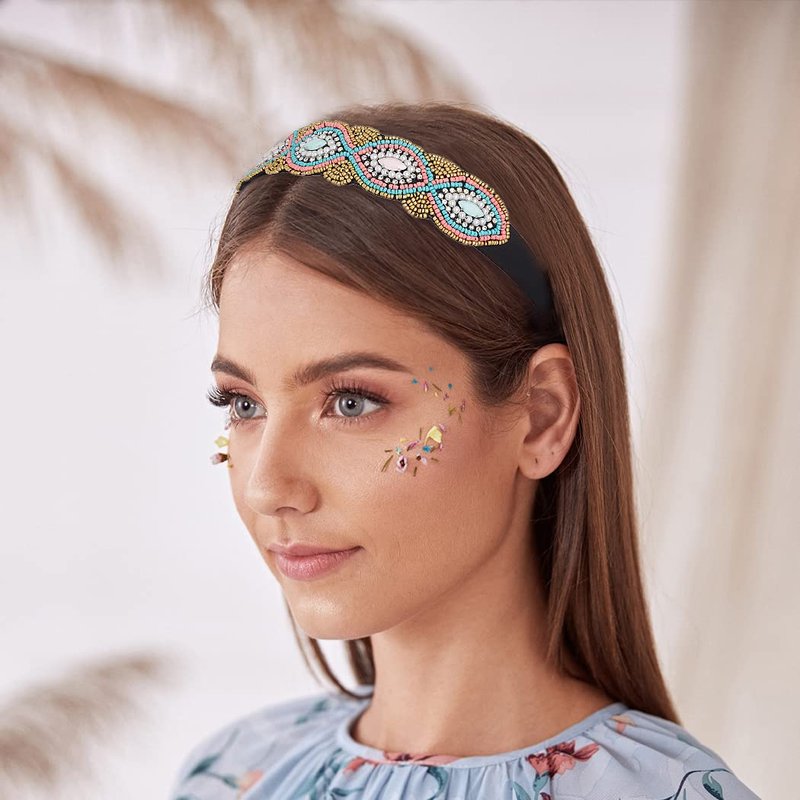 - Women's wide platsic headband adorned with colorful beads. It wiil make you stand out from the crowd when you attend a party.