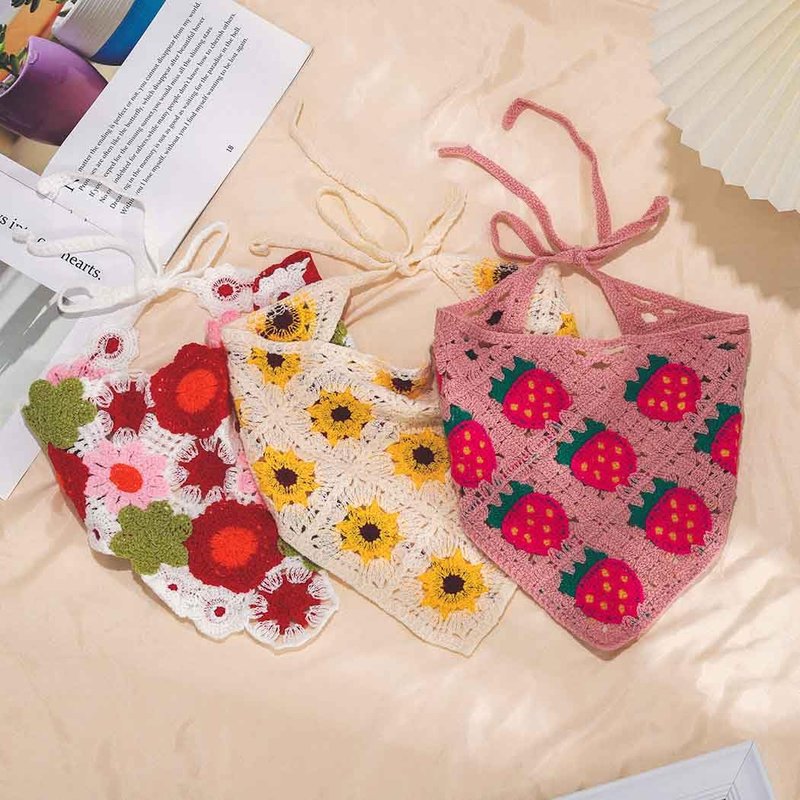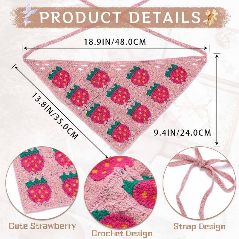 Woeoe Crochet Floral Bandana Knit Triangle Headband Cute Strawberry Head Scarf for Women's Hair(3 Pcs)
