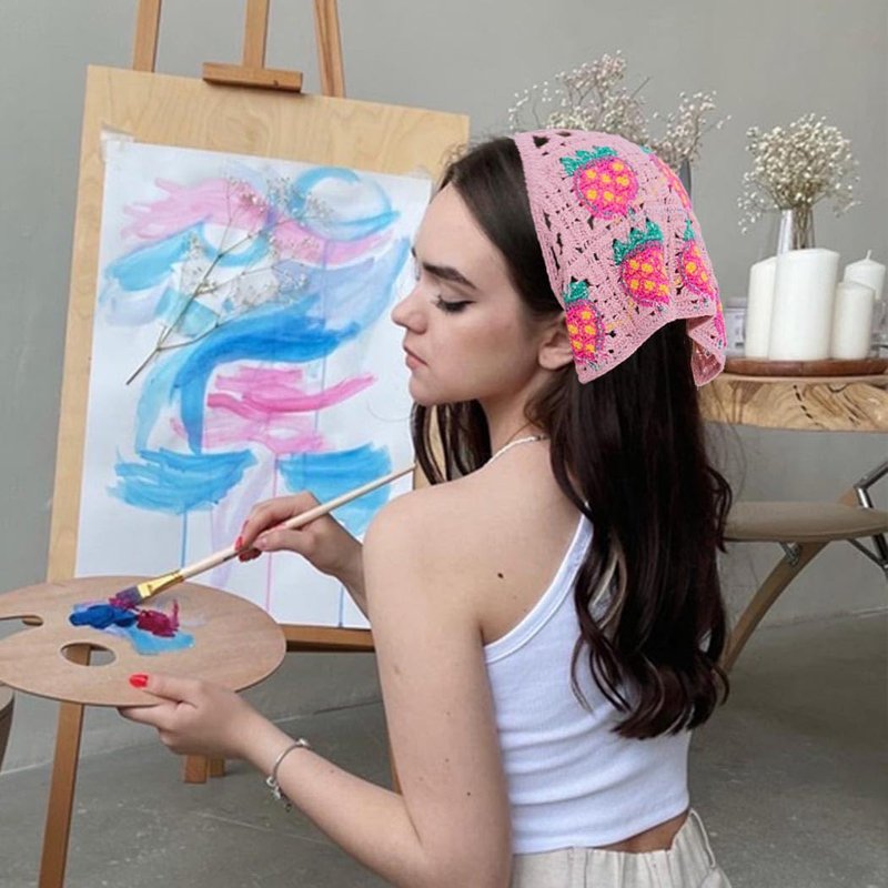 - Floral bandana headband is hand-woven, the knitted material is soft and you will feel very comfortable to wear. Cute strawberry print will make you like our headscarf even more.