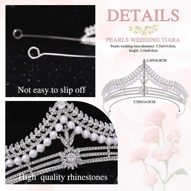 - Bride tiara and crown is made of high quality alloy crown with pearls and rhinestone.The accessories on the crown are not easy to fall off and are sturdy.