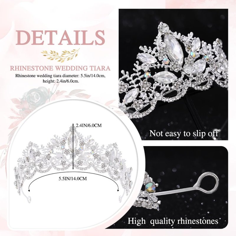 - Bride tiara and crown is made of high quality alloy crown with rhinestone.The accessories on the crown are not easy to fall off and are sturdy.