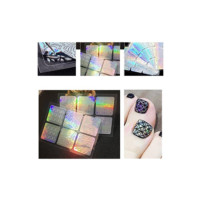 WOIWO 12 Types of Nail Art Decals,Laser Hollowed-Out Nail Art Decals and 3D Nail Art Decals