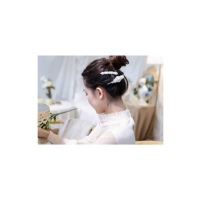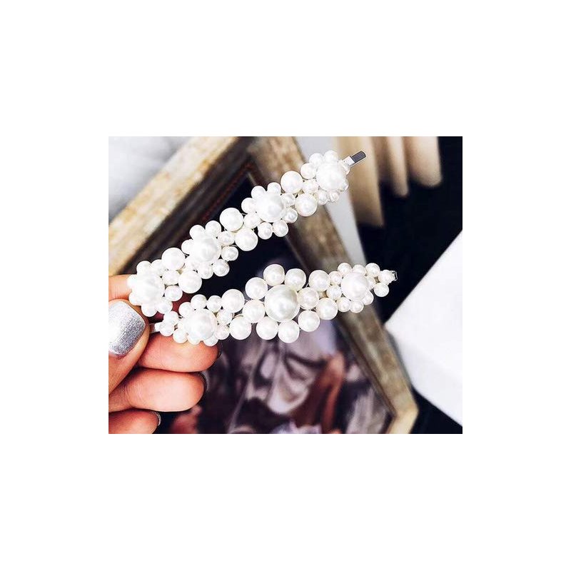 - Material: Faux pearl and metal; Color: Silver; Quantity:2Pcs different styles hair pins