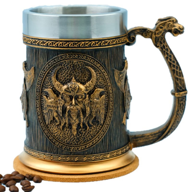 - 【UNIQUE DESIGN】:Creative design with Viking Ship Dragon Drakkar Tankard(ODIN picture by ramdon of 2 styles),perfect medieval gift and skull collection,the best gift for friends and family, this stainless steel mug is the perfect choice for Halloween and other festivals.