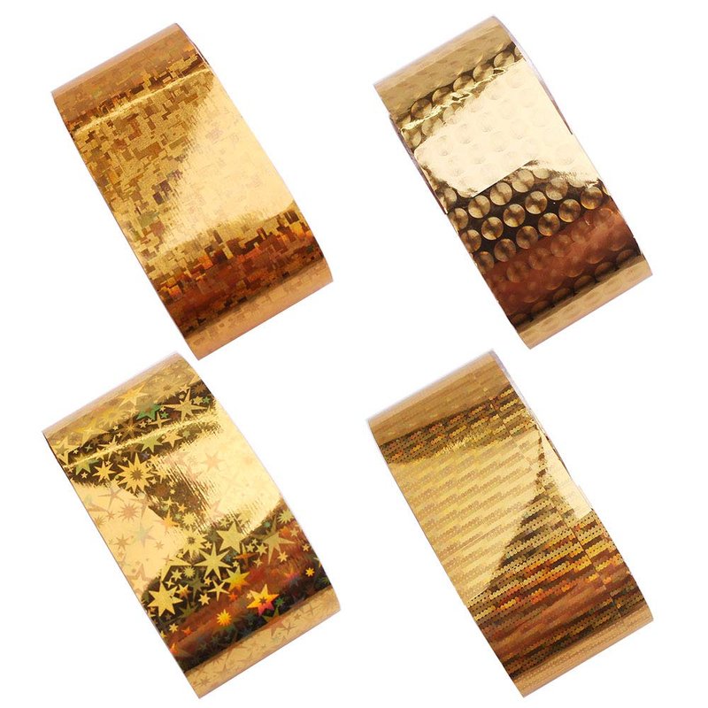 WOKOTO 10 Rolls Gold Foil Nail Art Transfer Stickers Tips Laser Adhesive Nail Wraps Decals Starry Sky Manicure Decoration (0.98inchs*39.4inchs)