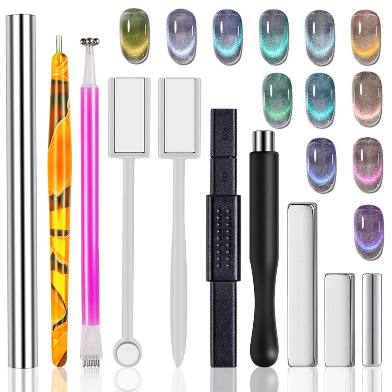 - 【10 IN 1 DIFFERENT STYLES】 : You will receive a set of 10 pcs cat eye magnetic stick tools with different style for cat eye effect nail art, including large silver cylinder magnet, flower shapes, 1 point, 4 point, rectangle, round and any other plenty shapes, can make different cat eye designs, enough quantity to meet your different needs.