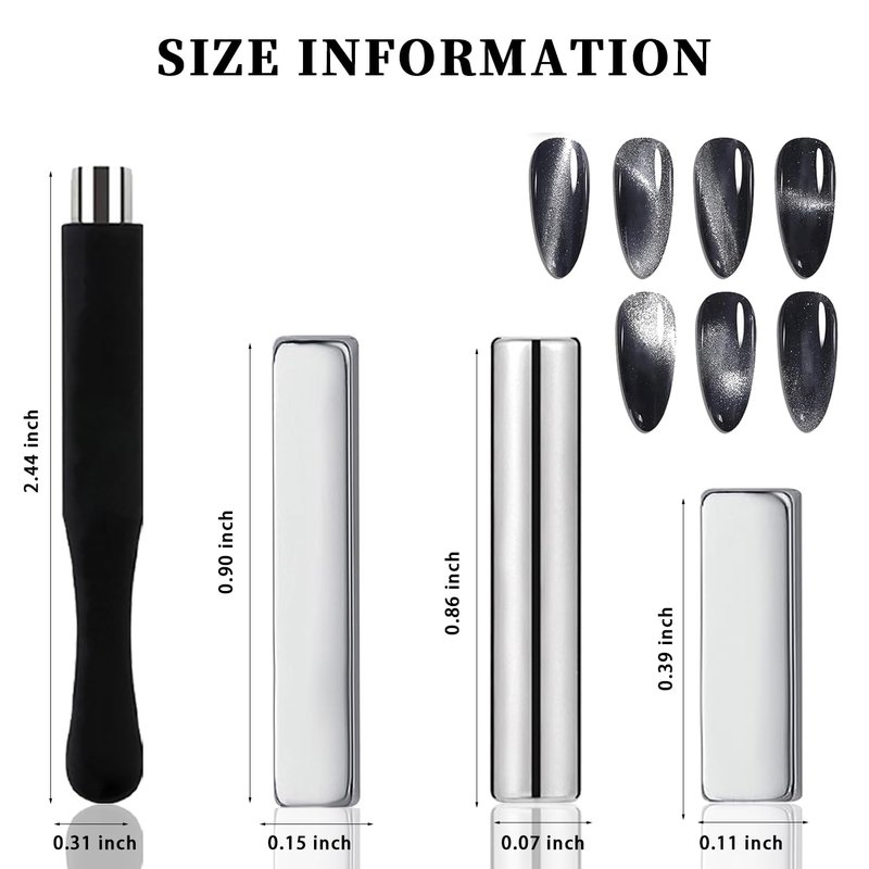 - 【MAKE MULTIPLE YOUR OWN STYLE】: Create beautiful and unique cat eyes gradient designs nail art quickly with these magnet tools, used with cat eye nail gel, superb magnetism help you easy to get the cat eye effect within 5-10 Seconds. Easy and quick to create beautiful nail for long-lasting tips.