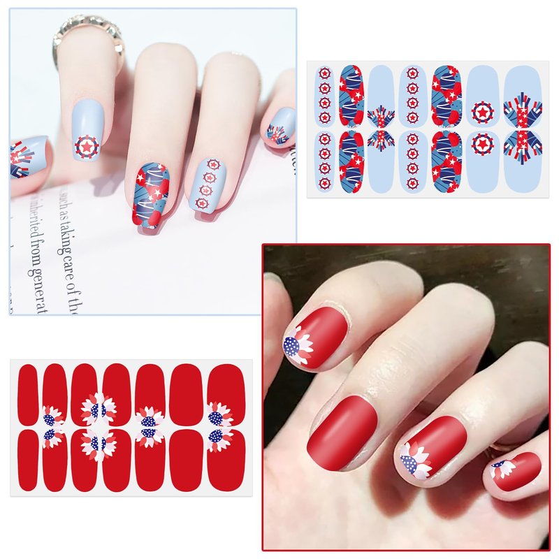 - 【INDEPENDENCE DAY DESIGN】: The nail wraps kit include various different independence day patterns, such as American Flag, Statue of Liberty, USA, Stars, and so on. All with blue/red/white color, concise but unique, make your nails more dazzling and charming.