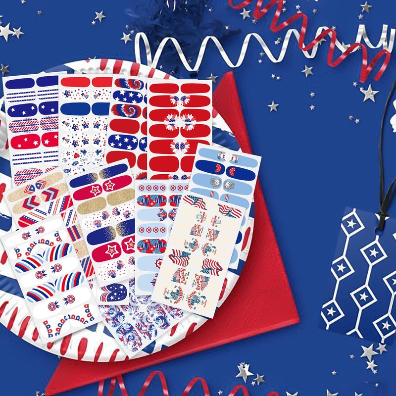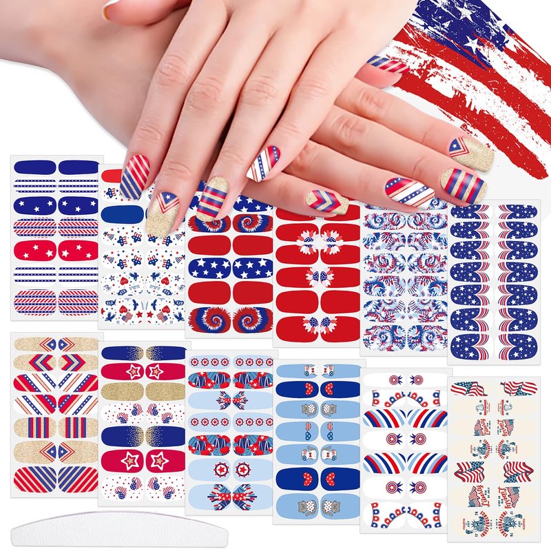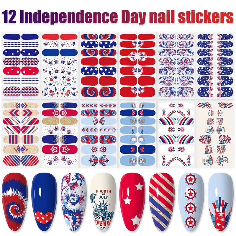 - 【PACKAGE CONTENTS】: 12 sheets self-adhesive 4th of July nail strips + 1pc moon shape nail file. 14 pieces for each sheet, 168 pieces in total. You can design unique nails art as you like.