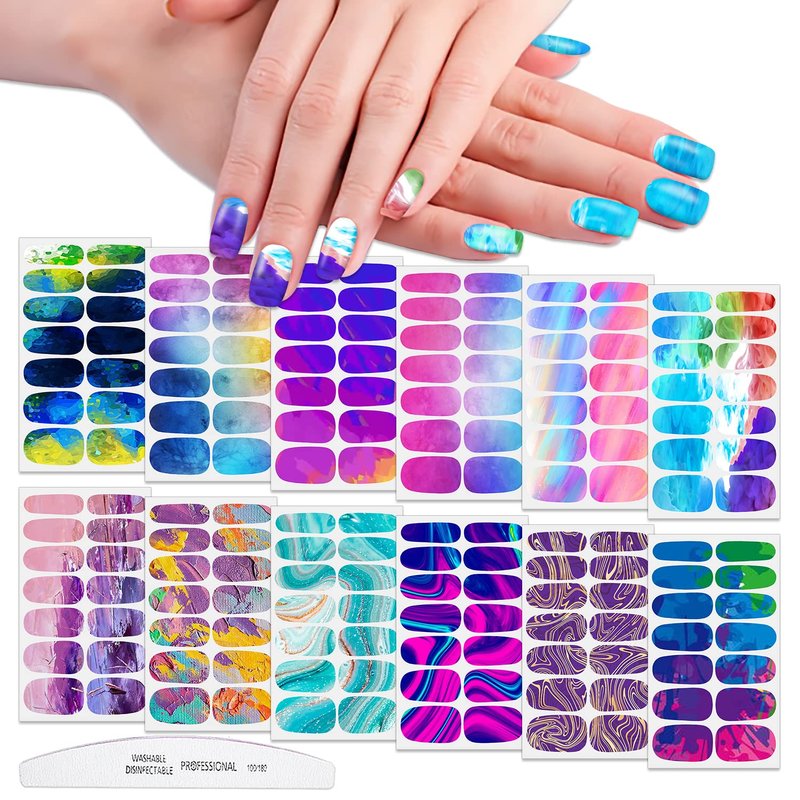 - 【12 DIFFERENT GRADIENT DESIGNS】:these full nail wraps including various different mixed color and gradient designs, that are fashionable to mix up with different style everyday, make your nails more dazzling and charming.
