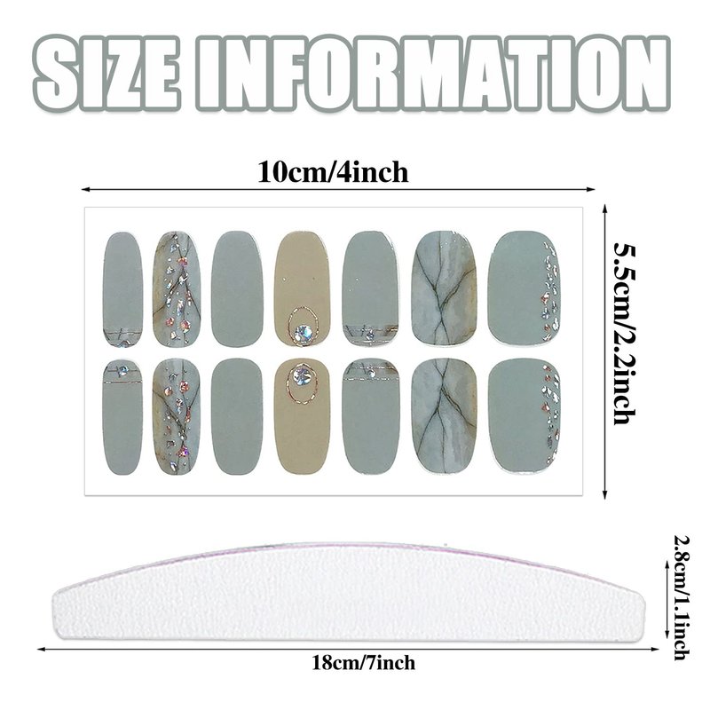 - 【PACKAGE CONTENTS】:12 sheets self-adhesive nail strips + 1pc moon shape nail file. 14 pieces for each sheet in different sizes, 168 pieces in total. A variety of colors and designs, you can design unique nails art as you like.
