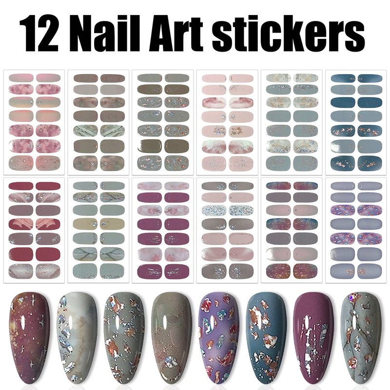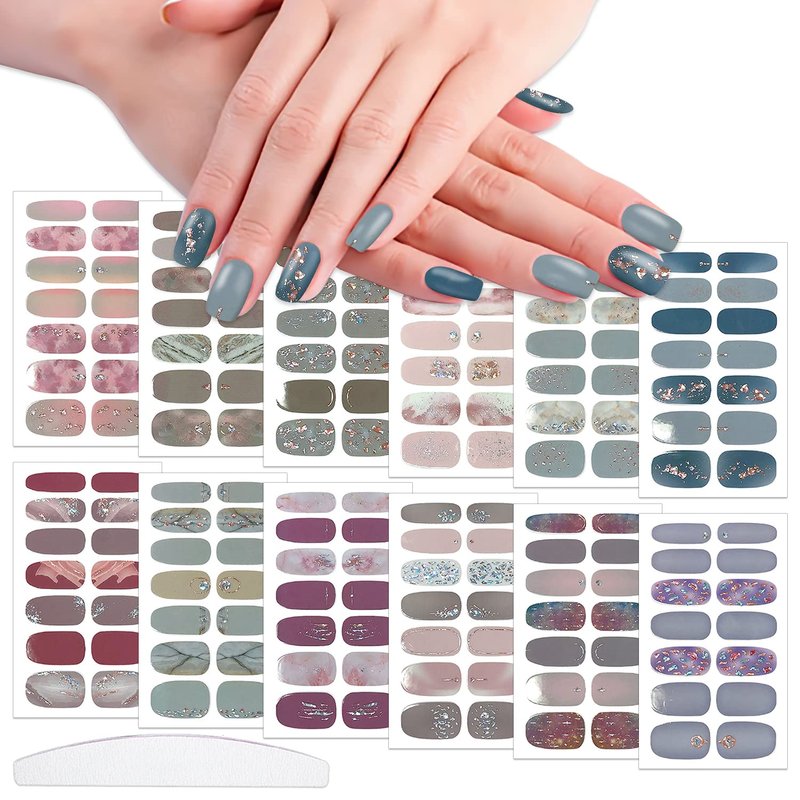 - 【12 DIFFERENT GLITTER GRADIENT DESIGNS】:these full nail wraps including various different mixed color and gradient designs, that are fashionable to mix up with different style everyday, make your nails more dazzling and charming.