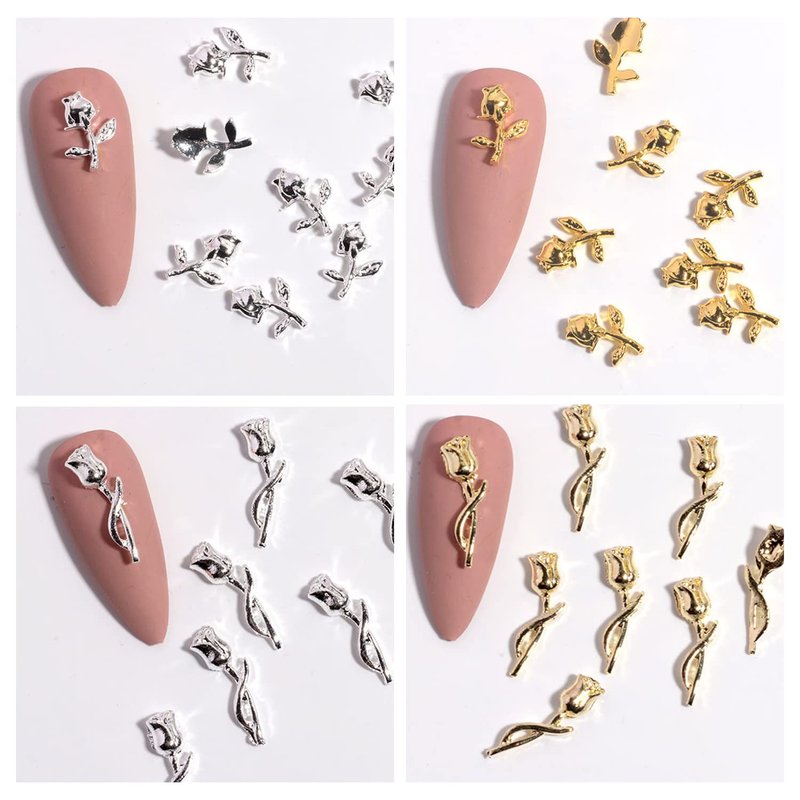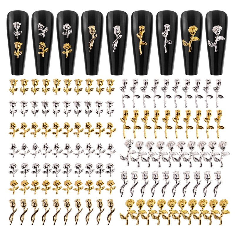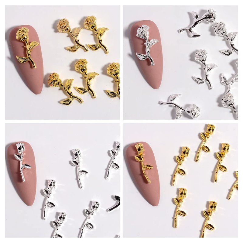 - 【3D Rose Charms For Nails】: Package content 120 Pcs gold and silver rose flower nail charms, Shinny and fit for plenty of nail art designs.