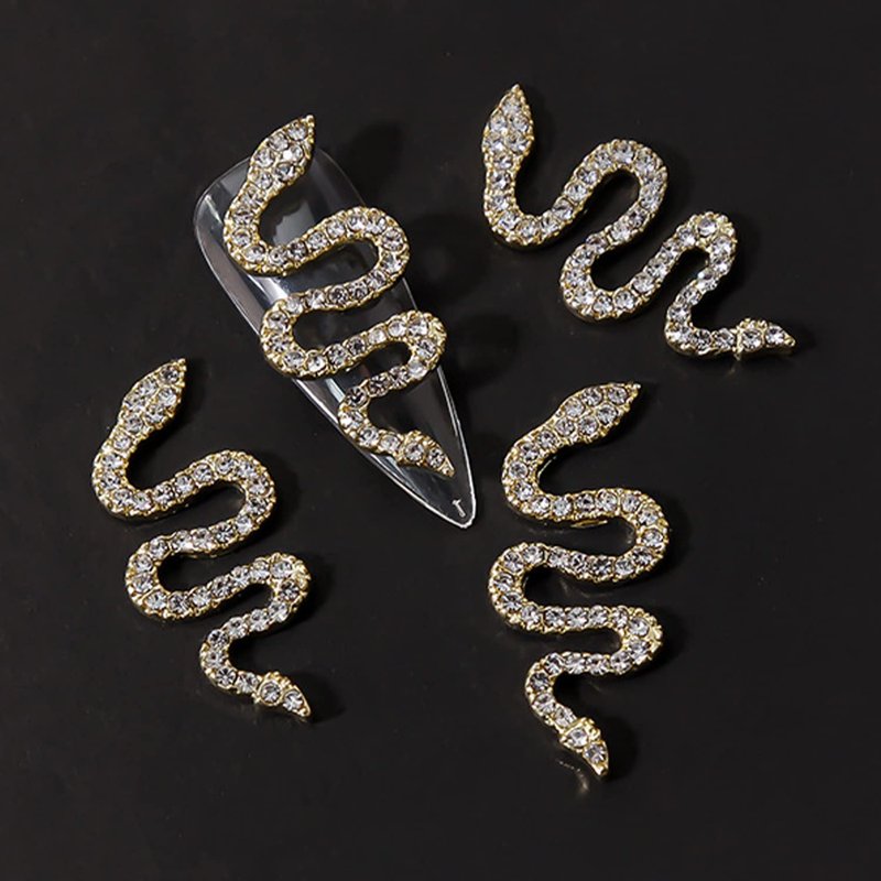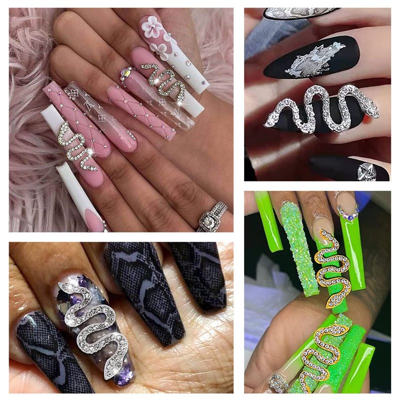 - 【Luxury Charms Design】: The nail snakes charms are designed with alloy and rhinestones, you can just stick it on nails, Luxury and shiny all the time, make your nails look more elegant and charming.